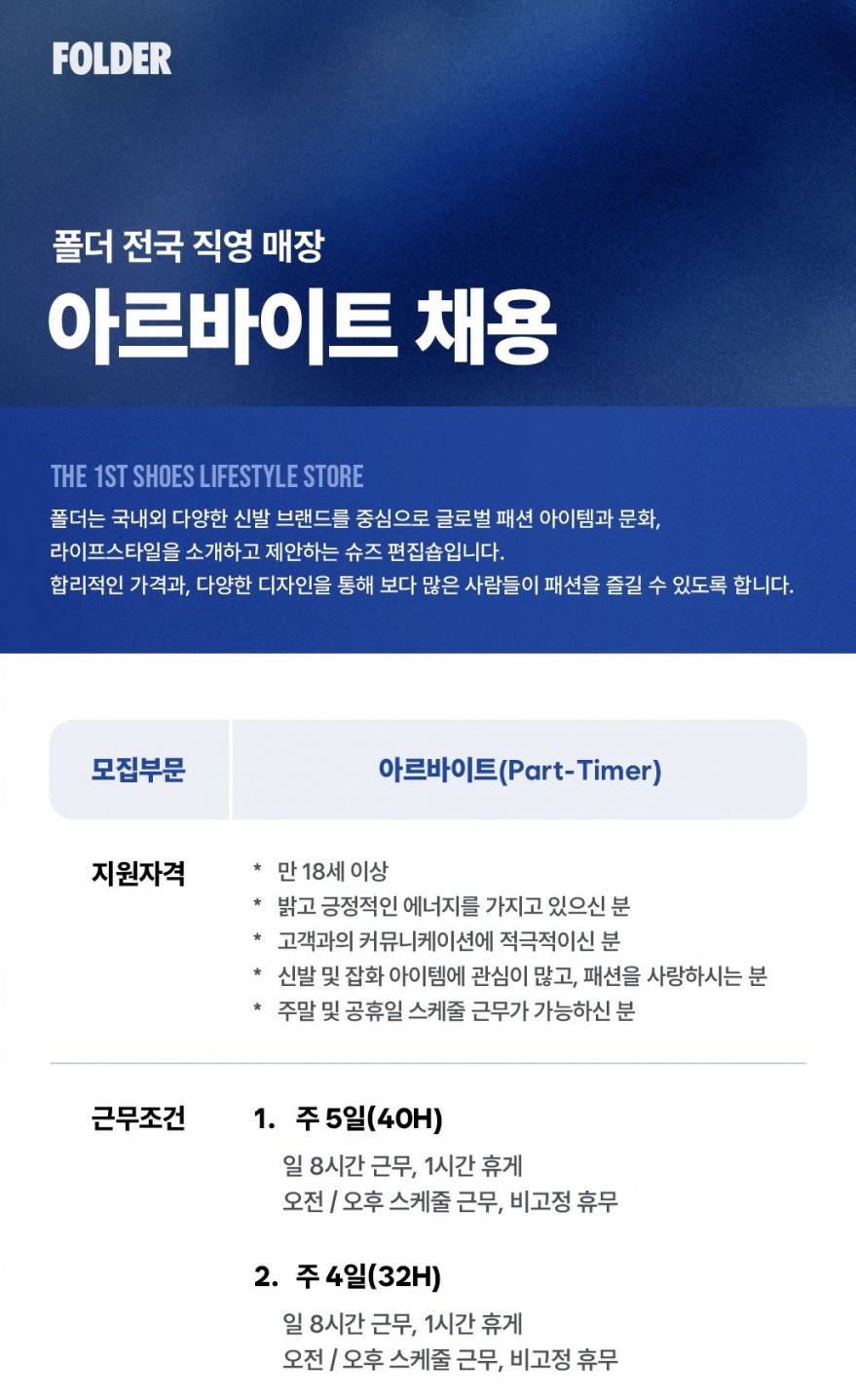 [폴더 신제주점] 주5/4/3일 크루를 모집합니다.