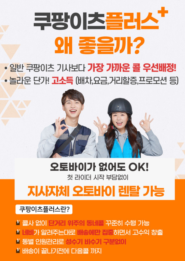 쿠팡플러스 배민플러스 기사님들에게 우선배차 됩니다