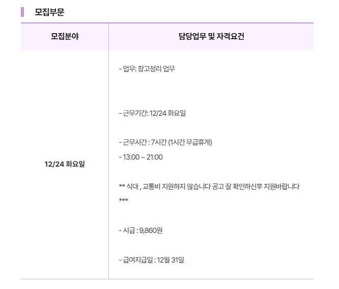 ** 식대 , 교통비 지원하지 않습니다 공고 잘 확인하신후 지원바랍니다 ***