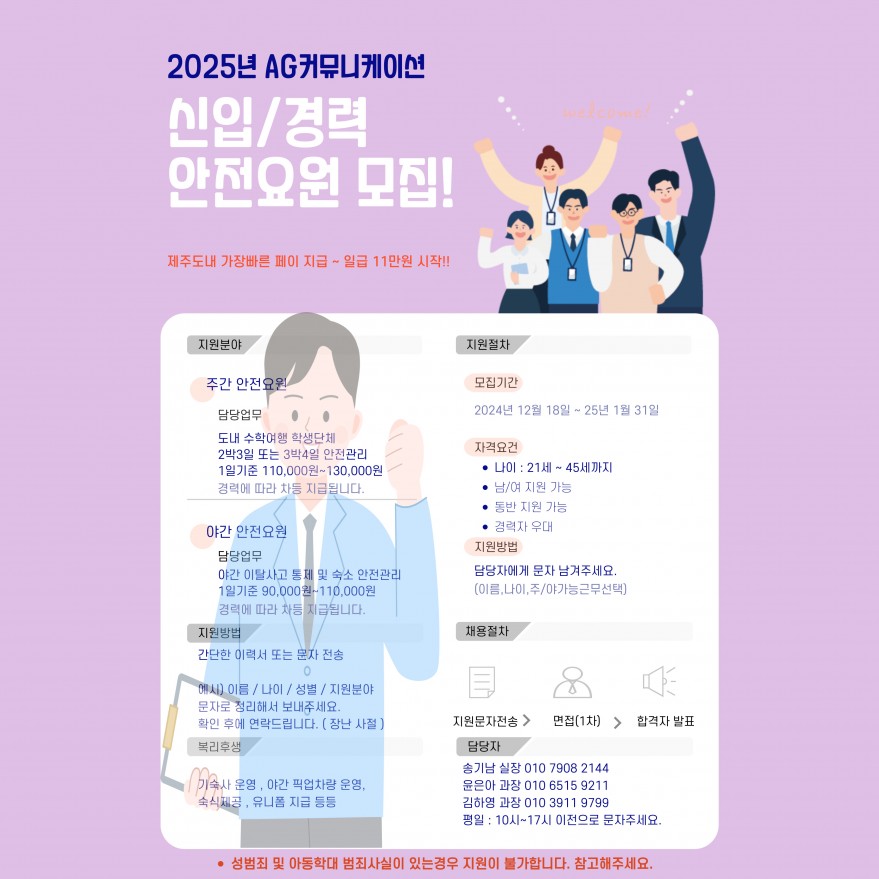 2025 AG커뮤니케이션 전반기 3월부터 같이 근무할 안전지도사를 모집합니다.