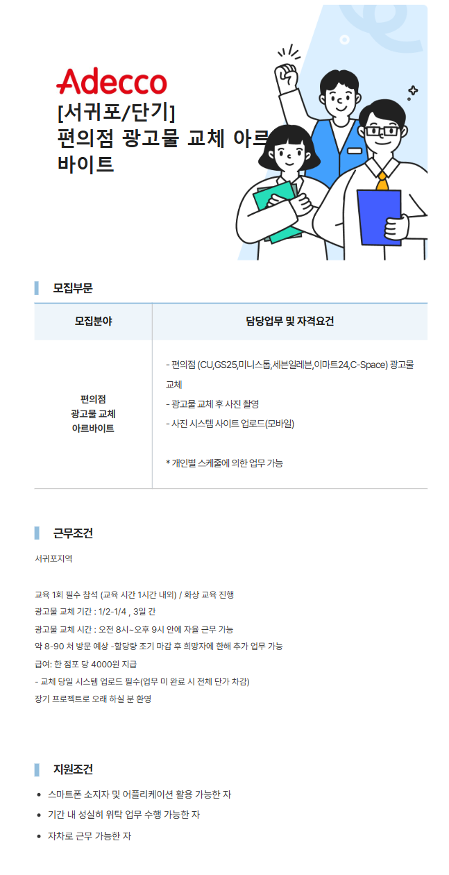 [서귀포/3일35만] 편의점 광고물 교체 단기 알바 페이지 정보 작성자 편OOOOOO체 작성일24-12-05 13:11 조회4,652회 연락처 010-7733-2777 급여 협의 : 건4000 관련링크 본문 문자지원 [성함/나이/거주지/이메일주소]자차 필수 주소 : 제주특별자치도 제주시 공항로 2 제주국제공항 이전글 다음글 목록