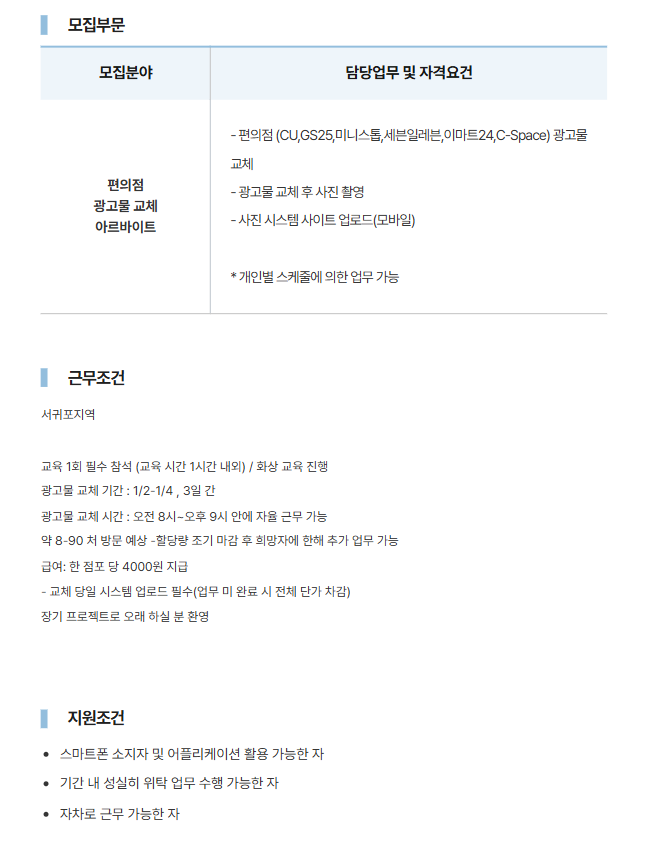 [단기/서귀포] 편의점 광고물 교체 페이지 정보 작성자 편OOOOOO체 작성일24-12-03 14:24 조회4,058회 연락처 010-7733-2775 급여 협의 : 건4000 관련링크 본문 [서귀포/3일] 편의점 광고물 교체 아르바이트 자차필수빠른 지원: 010-7733-2775로 문자 지원[ 성함/나이/거주지 ] 주소 : 제주특별자치도 제주시 공항로 2 제주국제공항 이전글 다음글 목록