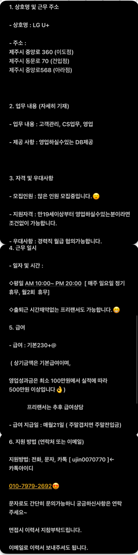 어려운일 찾지 마시구 여기서 일해보세요!! 페이지 정보 작성자 읽OOO요 작성일24-11-21 19:22 조회3,645회 연락처 010-7979-2692 급여 월급 : 230+150 관련링크 본문 일합시다! 주소 : 제주특별자치도 제주시 중앙로 360 1 이전글 다음글 목록
