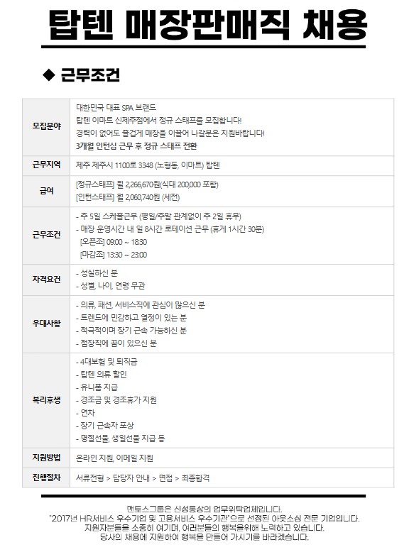 탑텐 이마트 신제주점 / 제주중앙점 스태프 모집