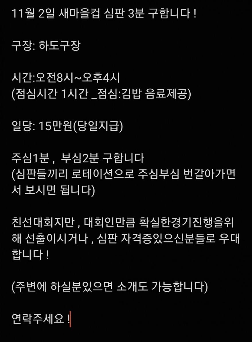 축구친선대회 심판구합니다 당일지급 페이지 정보 작성자 최씨 작성일24-10-31 11:34 조회3,487회 연락처 010-6540-1993 급여 일당 : 150,000원 관련링크 본문 010 6540 1993 으로 연락주시면 감사하겠습니다(체육과분들,고등선출,심판자격증 환영)주소는 하도리3207 입니다 ! 주소 : 제주특별자치도 제주시 구좌읍 하도리 3205 항일운동기념공원축구장 이전글 다음글 목록