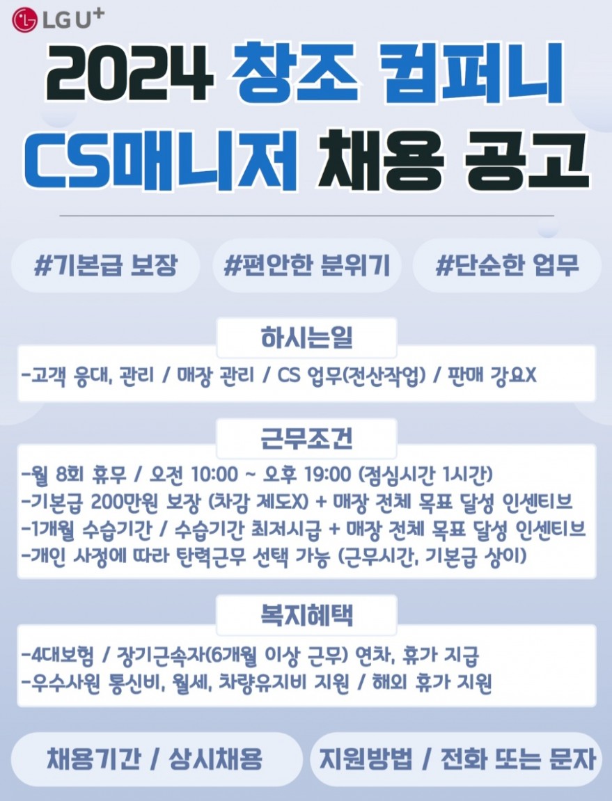 Cs매니저 모집합니다 페이지 정보 작성자 하OO이 작성일24-08-27 10:59 조회3,531회 연락처 010-8080-4677 급여 월급 : 2000000 관련링크 본문 Cs매니저 모집합니다. 주소 : 제주특별자치도 제주시 연북로 34 유플러스 이전글 다음글 목록