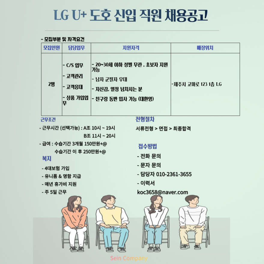 LG U+ 세인 직원채용 페이지 정보 작성자 으OO핫 작성일25-04-04 18:17 조회1,572회 연락처 010-2361-3655 급여 월급 : 3000000 관련링크 본문 LG유플러스 세인에서 직원 모집합니다. 주소 : 제주특별자치도 제주시 고마로 123 LG유플러스 이전글 다음글 목록