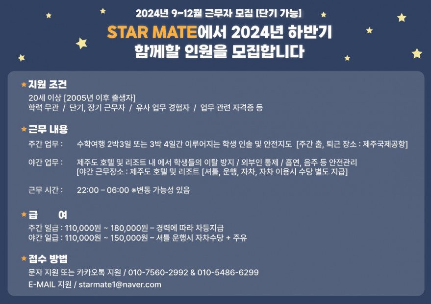 제주도 수학여행 인솔자 모집 합니다 ~!