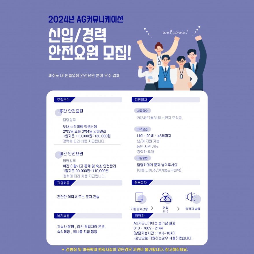 주간/야간 인솔하실 안전요원선생님 모집합니다