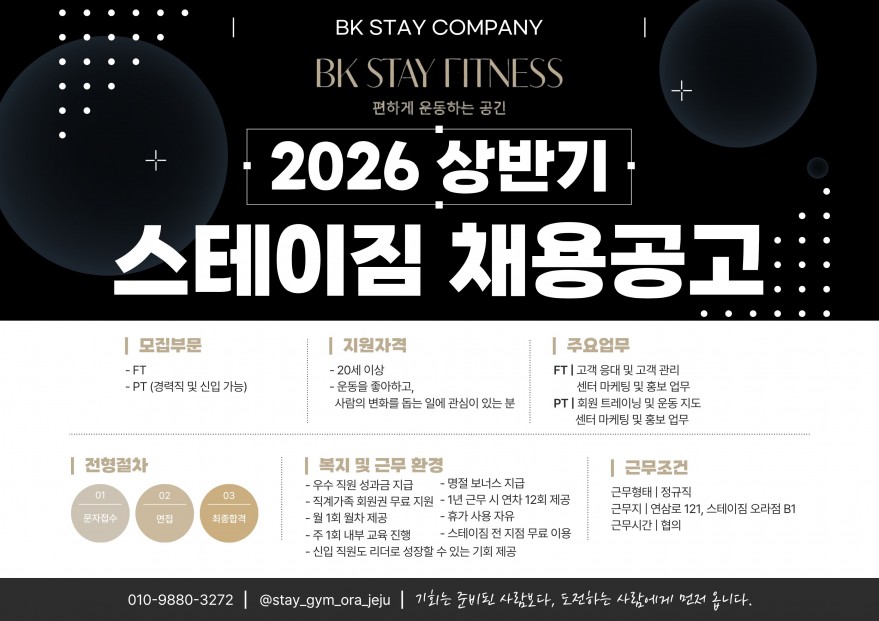 BK 스테이컴퍼니 스테이짐 오라점(2호점) 채용 공고