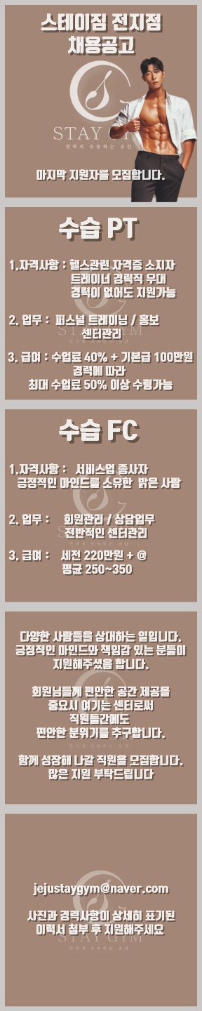 스테이짐 동문점에서 즐겁게 일하실 직원 모셔요 페이지 정보 작성자 스OO짐 작성일24-07-12 21:32 조회3,149회 연락처 010-8361-5241 급여 협의 : 0 관련링크 본문 밝고 긍정적인 직원 기다리고 있습니다 많관부!!! 이력서 첨부 후 연락 주세요!! 주소 : 제주특별자치도 제주시 동문로 80 3층 스테이짐 이전글 다음글 목록