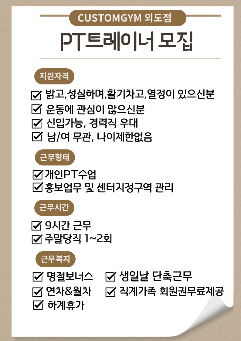 ★★ 커스텀짐 외도점에서 경력직PT선생님을 모집합니다 ★★ 페이지 정보 작성자 커OOOOO점 작성일24-06-24 09:48 조회3,496회 연락처 010-9838-3254 급여 협의 : 협의 관련링크 본문 커스텀짐본점(외도점)에서 함께 근무하실 경력직PT선생님을 모집합니다. 함께 꿈을 이어나가실 선생님께서는 언제든지 문의연락주세요 ^^ 주소 : 제주특별자치도 제주시 우령남길 12 1~2층 이전글 다음글 목록