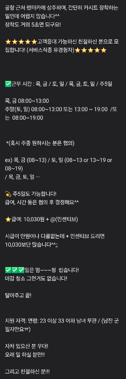 ⭐⭐⭐⭐⭐고객응대 가능하신 친절하신 분으로 모집합니다! (서비스직종 유경험자)⭐⭐⭐⭐⭐