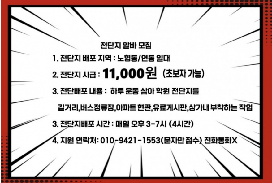 전단지 알바모집 (제주 연동아파트 단지 일대)