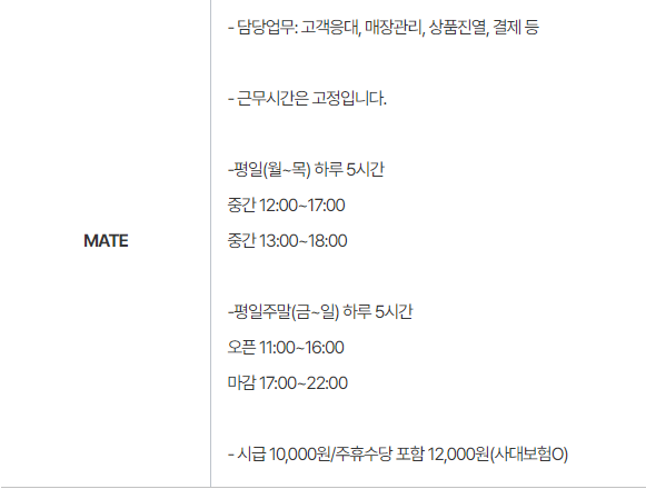 올리브영 제주연동신라점 MATE 구인합니다. 페이지 정보 작성자 연OOO점 작성일24-06-14 16:07 조회3,848회 연락처 010-5346-1221 급여 시급 : 10000 관련링크 본문 - 채용 관련 문의 시 채용 담당자 연락처로 문자 혹은 메일로 연락 부탁드립니다. 메일주소 : mirryun7553@cj.net 주소 : 제주특별자치도 제주시 노연로 49 올리브영제주연동신라점 이전글 다음글 목록