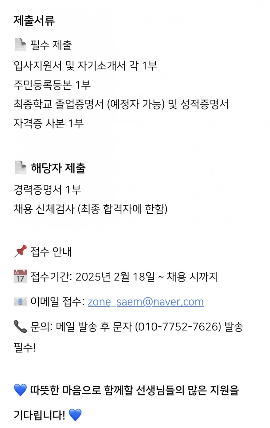 따뜻한 마음으로 함께할 선생님들의 많은 지원을 기다립니다!