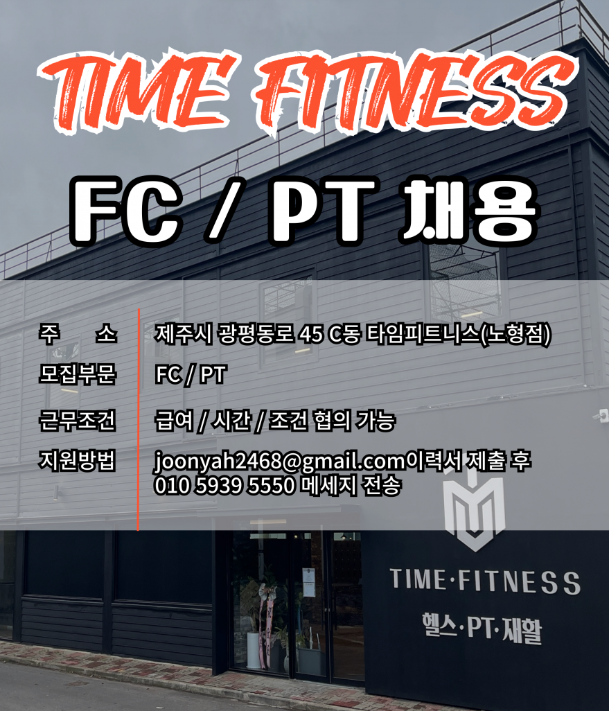 노형성당 옆 타임피트니스에서 FC/PT 선생님 모집합니다!