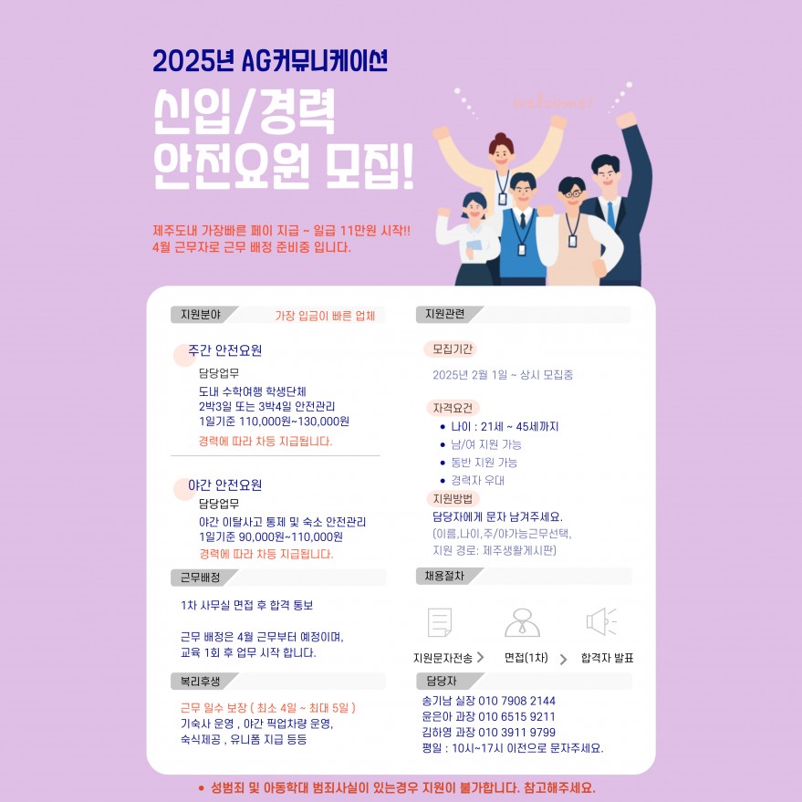 2025 제주 수학여행 우수업체 ag커뮤니케이션 안전요원 모집합니다.