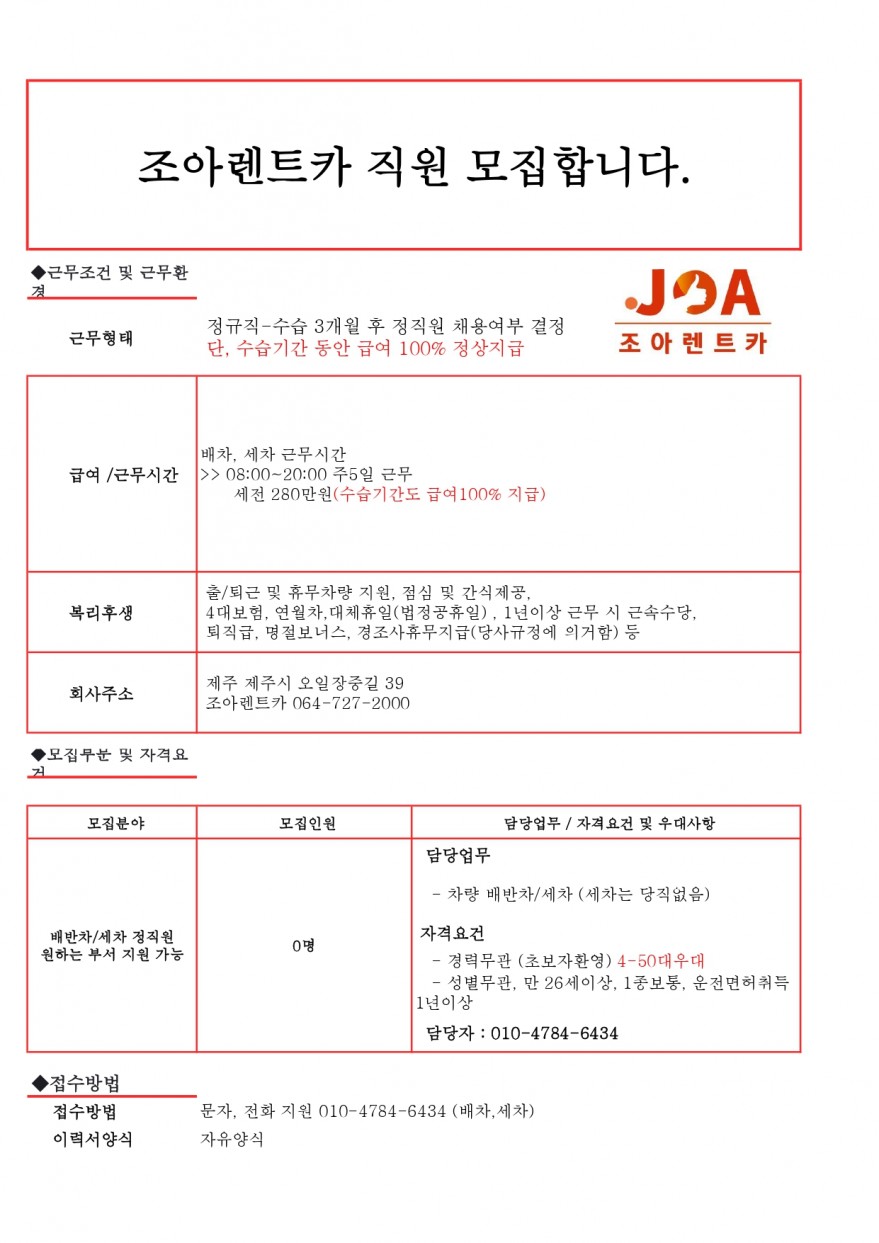 조아렌트카 정직원 모집합니다. 출퇴근/휴무 차량 지원 페이지 정보 작성자 쎄OO어 작성일25-02-10 17:40 조회1,316회 연락처 010-4784-6434 급여 월급 : 280만원 관련링크 본문 주소 : 제주특별자치도 제주시 오일장중길 39 조아렌트카 이전글 다음글 목록