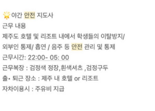 5월 21-23 화수목 3박 야간 안전지도사구함 페이지 정보 작성자 또잉 작성일24-05-16 10:13 조회5,448회 연락처 010-2691-5099 급여 일당 : 90000 관련링크 본문 여자분으로 구하고있습니다~ 전화는 잘못받으니 문자남겨주세요 주소 : 제주특별자치도 제주시 연무정길 28 현대아파트 ㅇㄹㅇㄻㄴ 이전글 다음글 목록