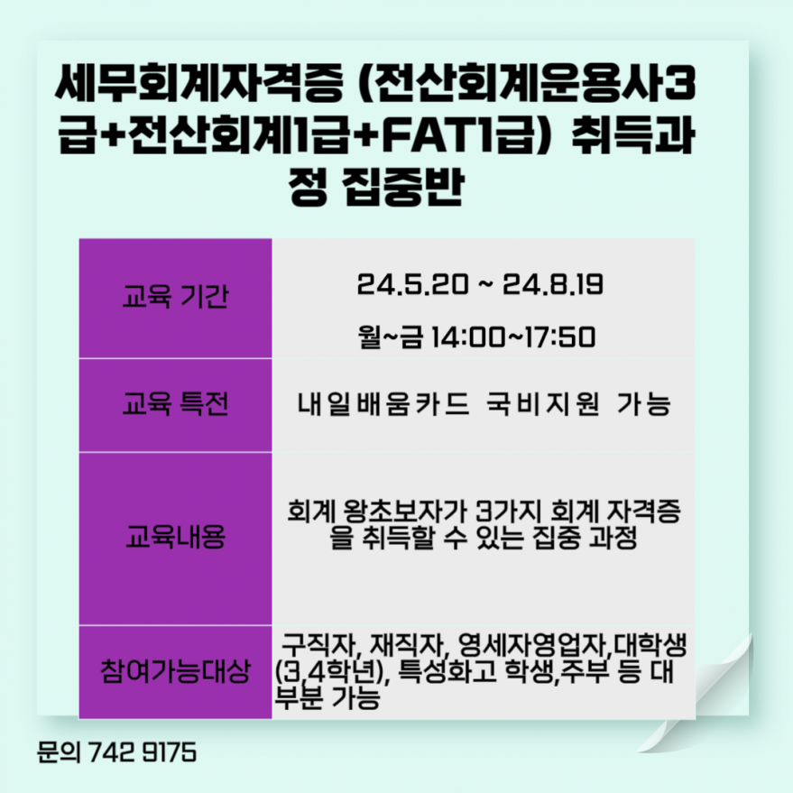 국비지원 왕초보 회계 자격증 집중반