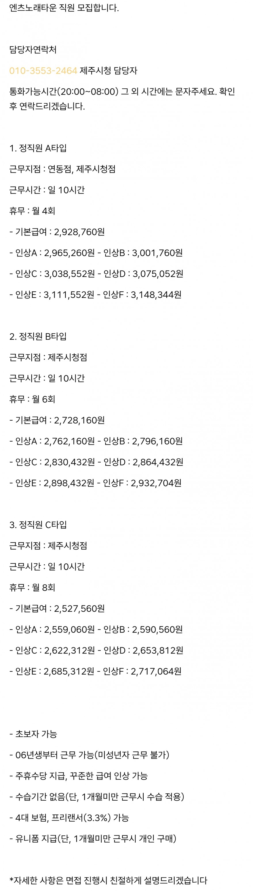 엔츠노래타운 제주시청점 직원 모집