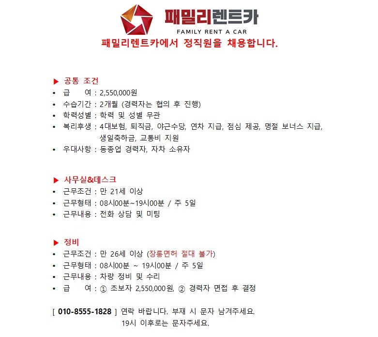 패밀리렌트카 사무실&데스크 정직원 구인 페이지 정보 작성자 패OOOO카 작성일25-07-30 08:36 조회783회 연락처 010-8555-1828 급여 월급 : 255만 관련링크 본문 연락주세요 주소 : 제주특별자치도 제주시 제성1길 67 이전글 다음글 목록