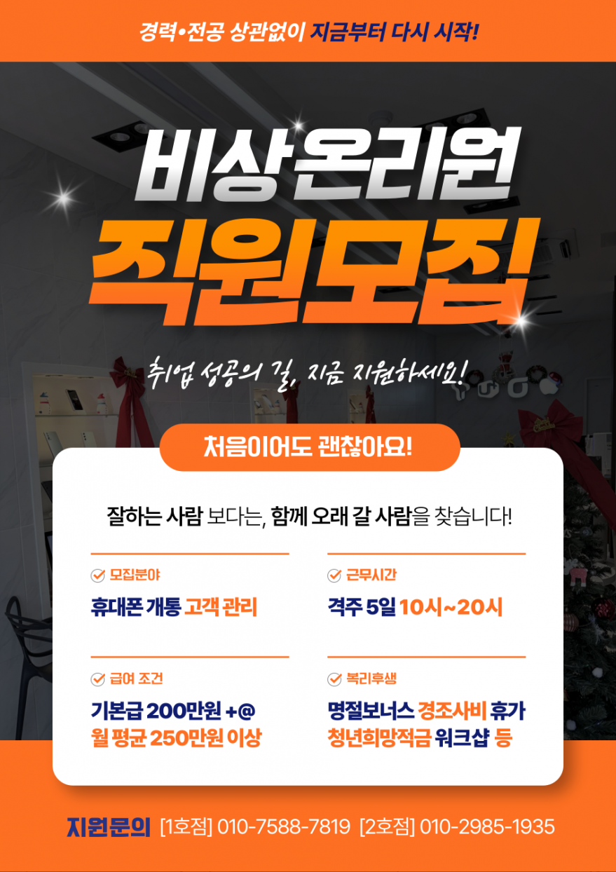 통신3사휴대폰⭐️비상!OnlyOne⭐️직원추가모집!초보자가능^^ 페이지 정보 작성자 일OO손 작성일25-12-31 16:06 조회122회 연락처 010-7588-7819 급여 월급 : 250만원 이상 관련링크 본문 - 주소 : 제주 제주시 월랑로 8길 1 이전글 다음글 목록