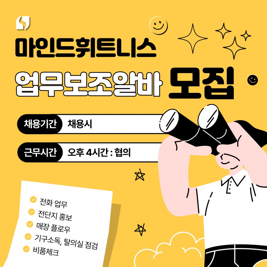 마인드휘트니스 노형점 업무보조 아르바이트 모집