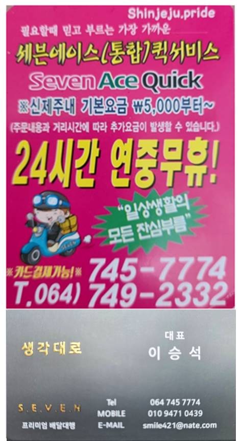 1) 신제주에서 개인심부름(기본5천원) 하실 기사님 모집합니다.