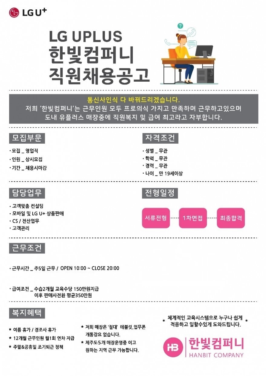 LG유플러스 도내 우수대리점으로 5개에 매장을 운영 중 입니다