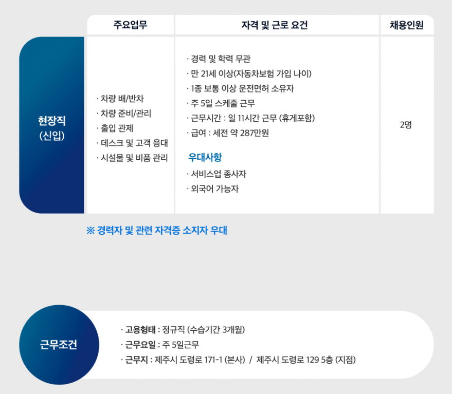 제주엔젤카 현장직 모집 페이지 정보 작성자 제OOOOO카 작성일25-06-16 10:22 조회2,818회 연락처 010-0000-0000 급여 월급 : 287 관련링크 본문 문의 사항 : 064)747-1200 지원 방식 : recruit@jejuangelcar.com 주소 : 제주특별자치도 제주시 도령로 171-1 제주엔젤카 이전글 다음글 목록