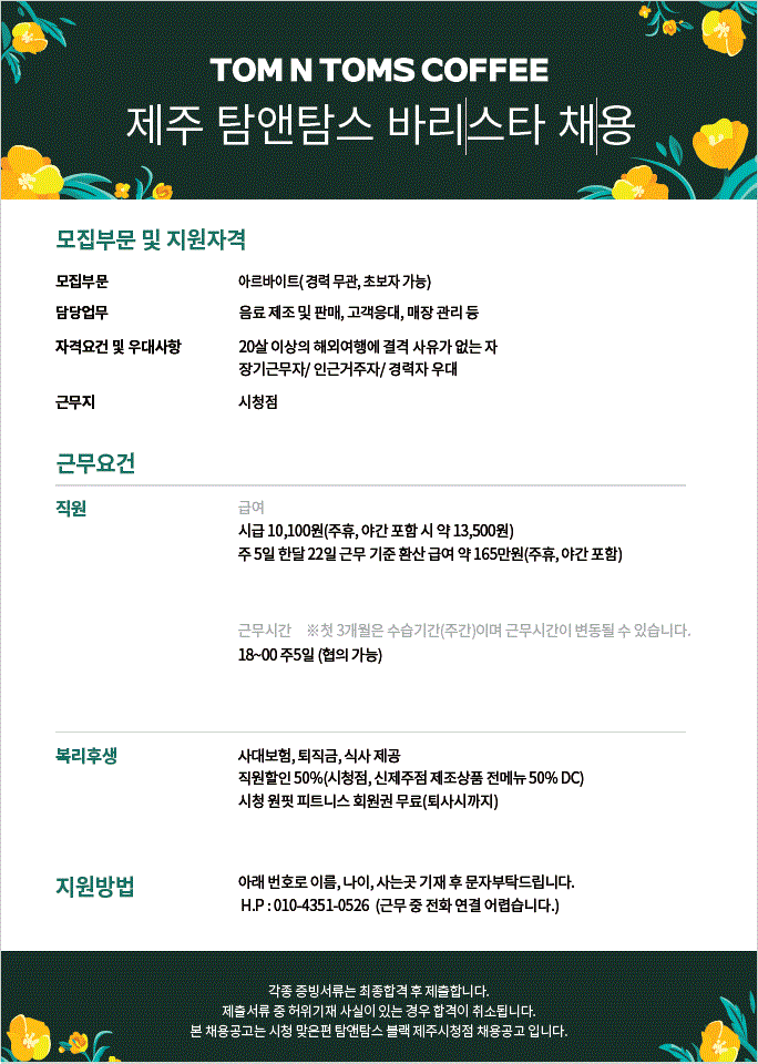 제주 시청 탐앤탐스 알바 구인 페이지 정보 작성자 TOOOOOOS 작성일25-09-20 11:16 조회323회 연락처 010-4351-0526 급여 시급 : 10100 관련링크 본문 사진 참조 부탁드립니다.!! 주소 : 제주특별자치도 제주시 중앙로 236 문산빌딩 1층 이전글 다음글 목록