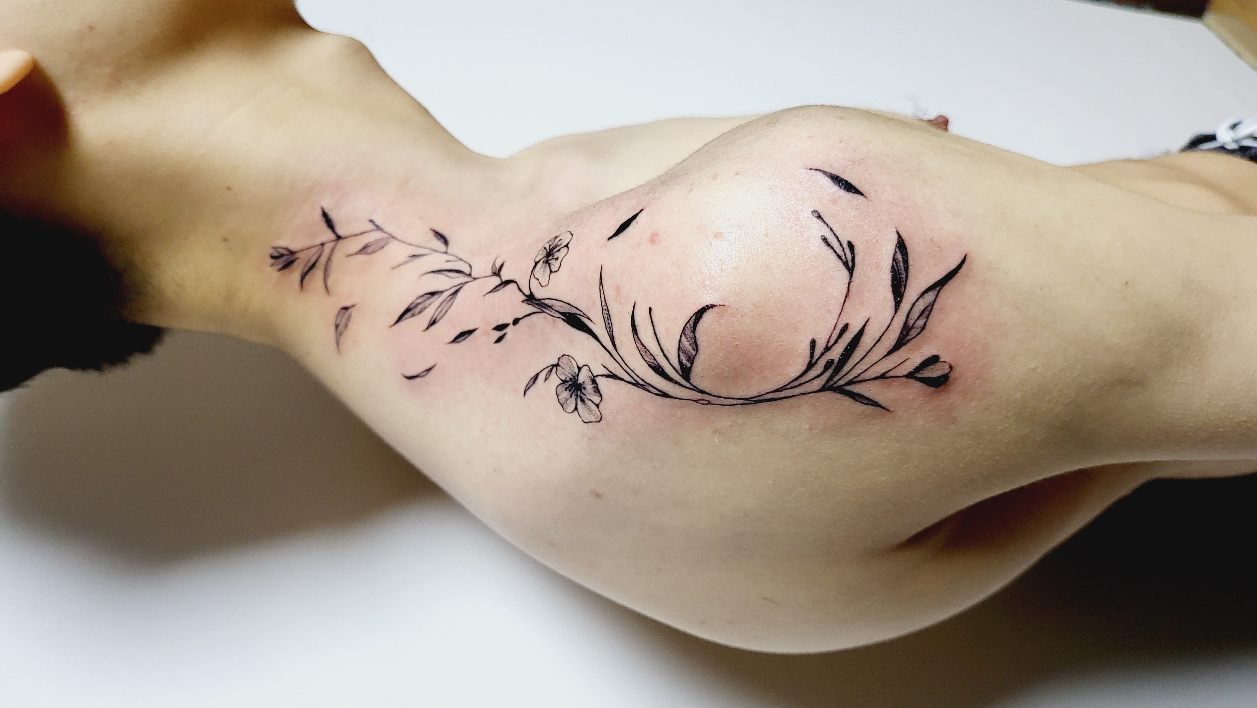 우정타투,옛문신커버,블랙워크,라인워크,탄생화타투