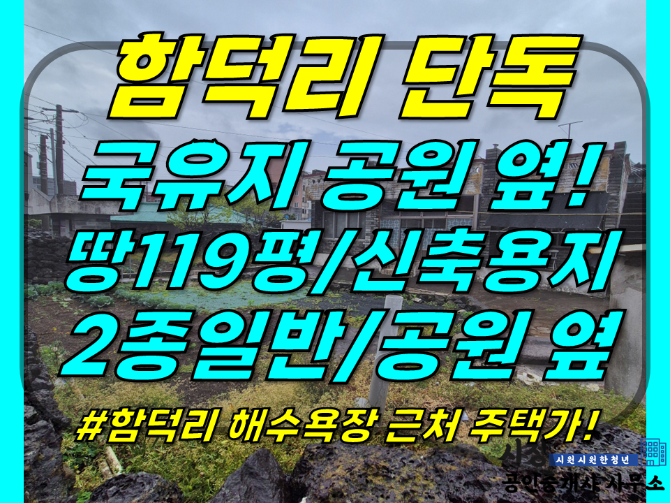 [ (급매)국유지 공원 바로 옆집+함덕해수욕장 근처! 조천읍 함덕리 단독주택 매매(구옥/대지119평+주택23평/제2종일반주거/상가로 용도변경 추천) ]