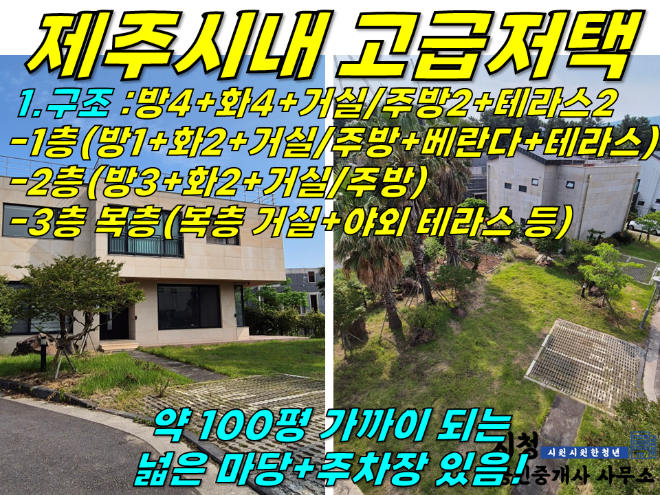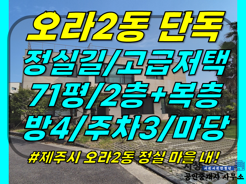 [ 신제주 정실+넓은 잔디마당! 제주시 오라2동 단독주택 매매(주택71평/고급저택/주차2대이상/방4+화4/남향) ]
