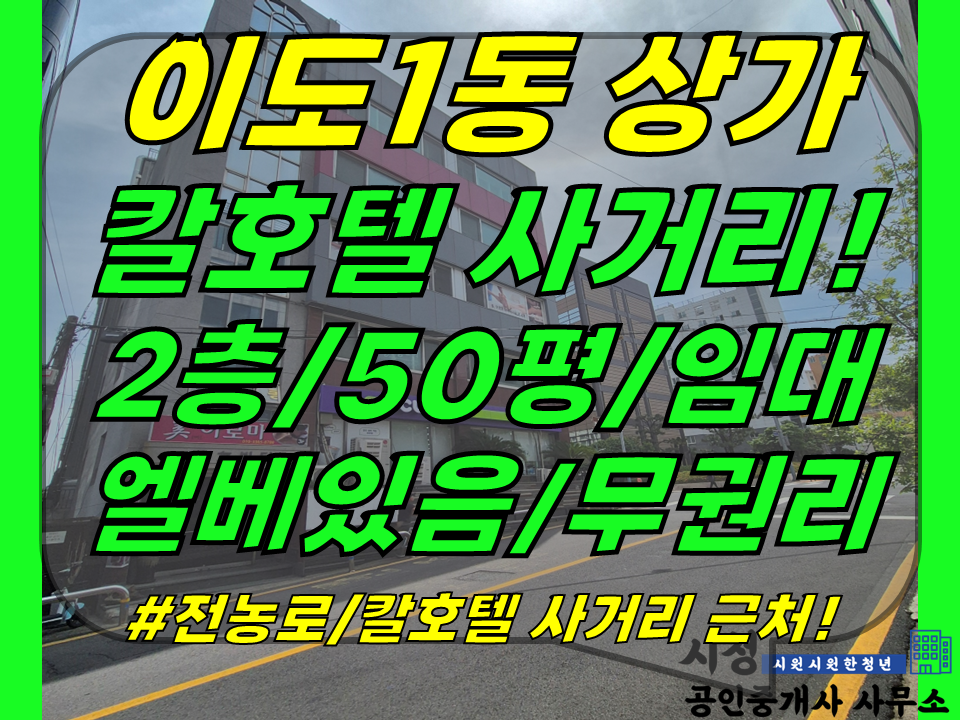 [ 전농로/칼호텔 사거리 근처+무권리! 제주시 이도1동 상가 2층 임대(50평/엘리베이터 있음/사거리 코너 건물) ]