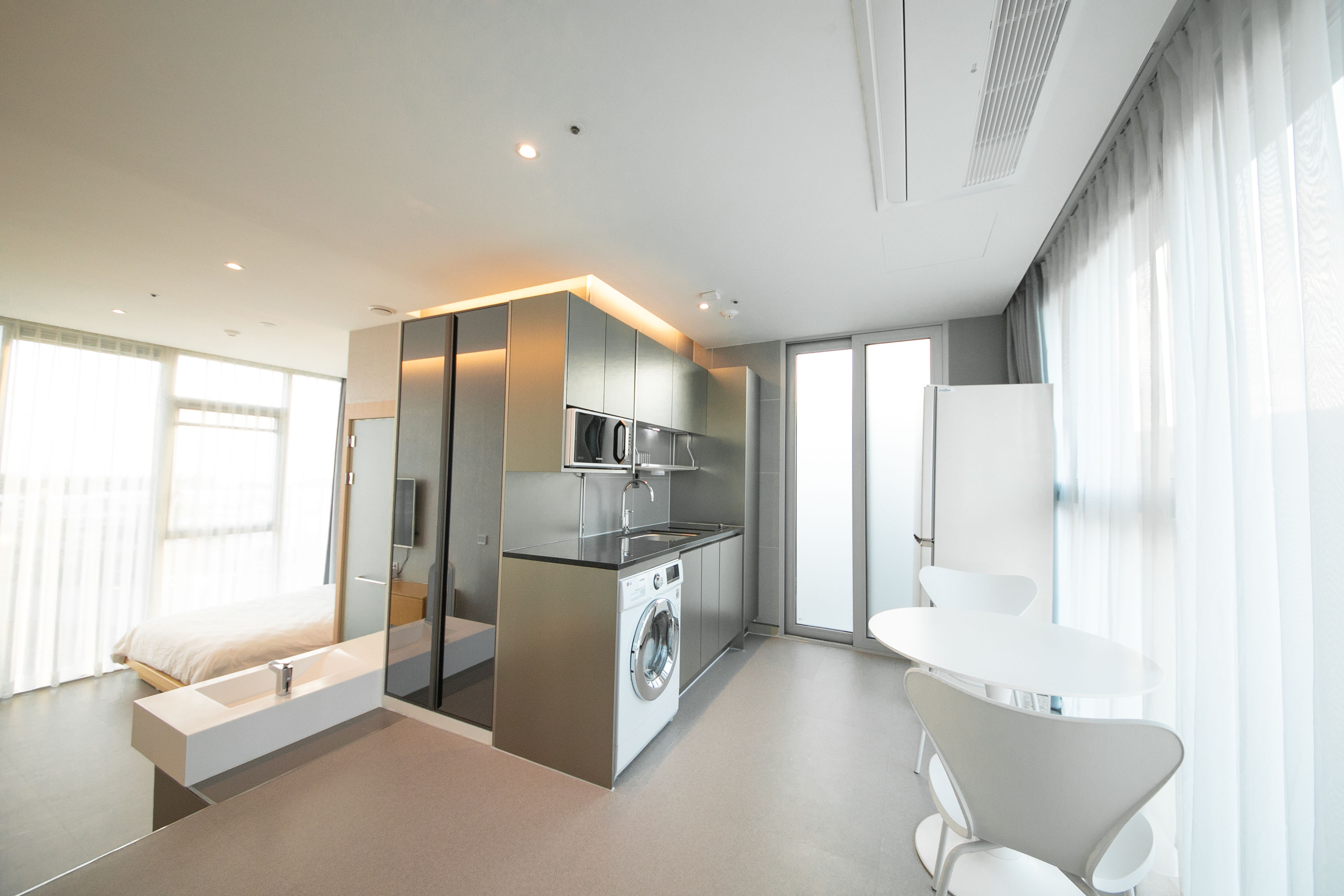 옵션 : 다이슨무선청소기, 다이슨공기청정기, 디자인냉장고, 헤어드라이기, 식탁테이블, 의자2EA, 호텔형 기본침구, 침대(퀸사이즈), 붙박이장2EA, 의류수납장, 드럼세탁기9KG, TV, 인덕션, 냉장고, 천장형 시스템 냉온풍기, 와이파이 공유기, 신발장, 물품수납장, 전자레인지, 전기포트, 와인오프너, 와인잔등 (욕실,주방은 하츠와 아메리칸스탠다드 브랜드로 설치되어 있음)