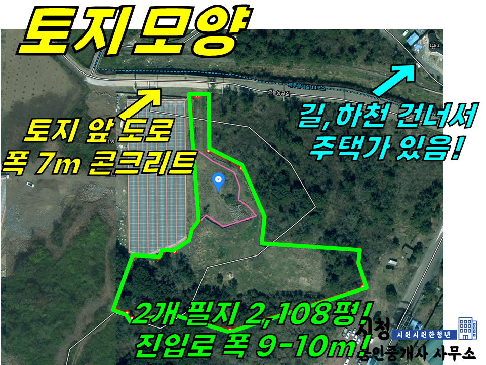 4. 본 토지 모양은 진입로가 좁고 안쪽이 넓은 자루형토지입니다. 하지만, 진입로가 되는 입구쪽의 좁은 부분도 폭이 10m가량 되어 중장비나 차량이 진입하기 충분히 좋습니다. 차량 동시에 2대, 혹은 20톤 트럭도 진입이 가능한 토지 입니다!