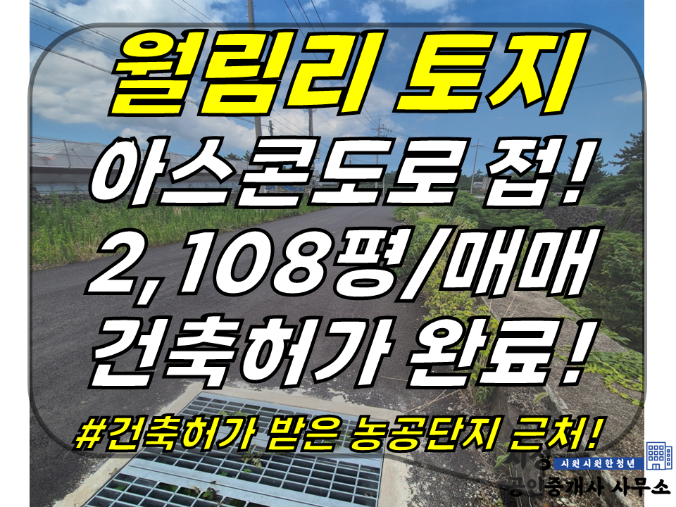 토지/임야 | 토지2-299[ 건축허가 완료+평당 40만원! 한림읍 월림리 토지 매매(2,108평/6m도로 접함/금능농공단지 근처/주택5동 …