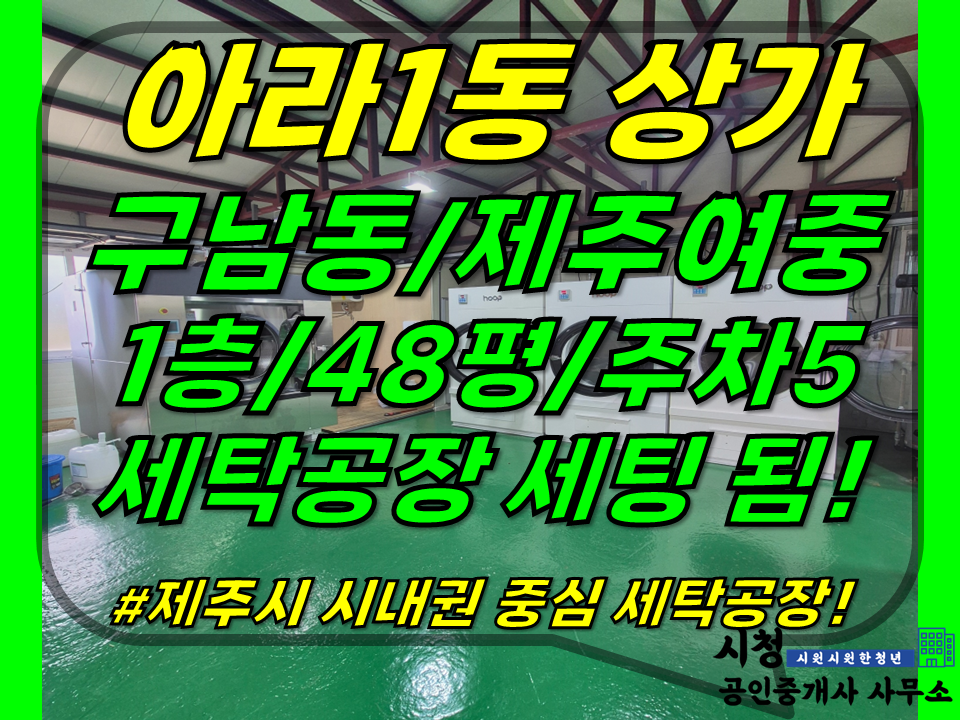 상가점포 | 상가1-445[ (급매)구남동 근처+1억 내림! 제주시 아라1동 상가 1층 임대(대지210평-상가48평/세탁공장/주차5대 이상…