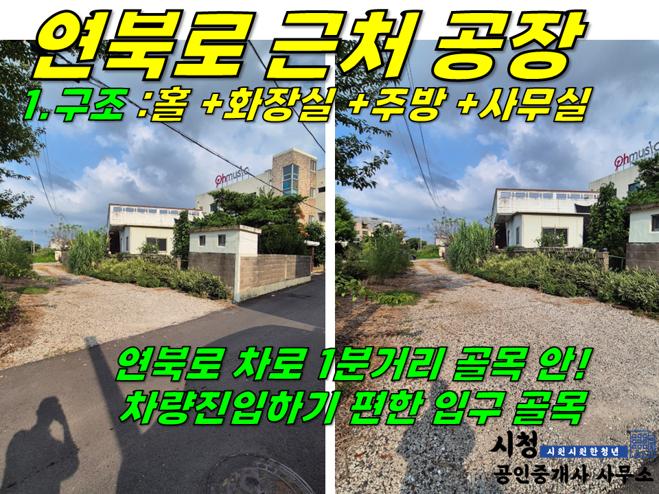 [ (급매)구남동 근처+1억 내림! 제주시 아라1동 상가 1층 임대(대지210평-상가48평/세탁공장/주차5대 이상/사무실 있음) ]