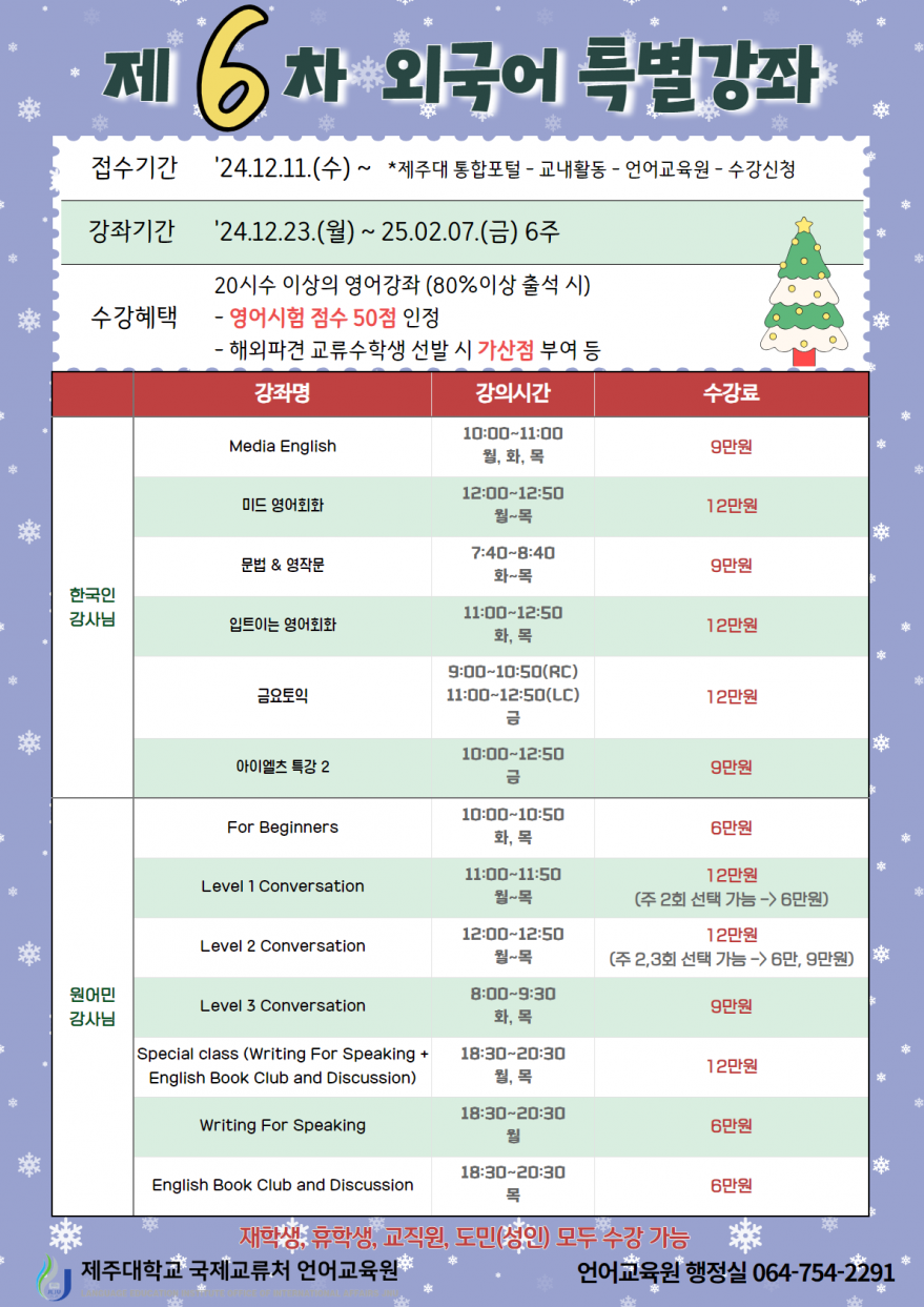 제주대학교 언어교육원에서 진행하는 다양한 어학강좌를 알려드립니다~
