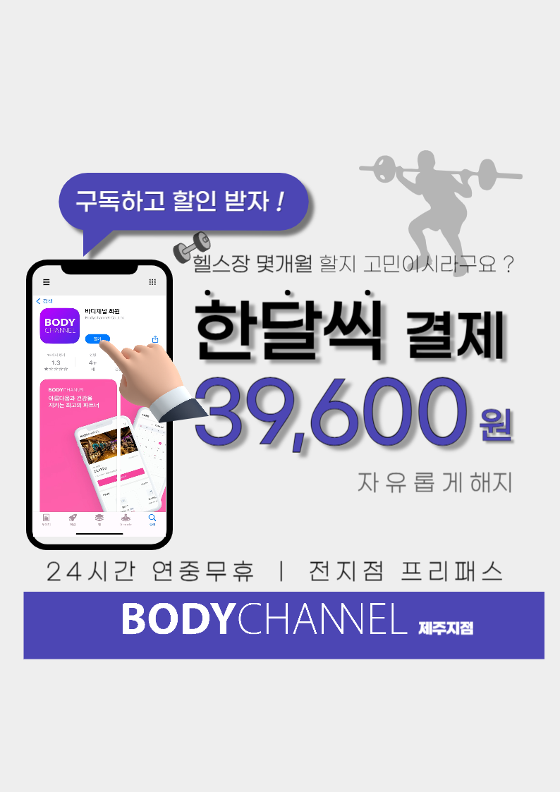 기타 | 바디채널휘트니스 월정기결제(구독) 서비스 오픈!! 페이지 정보 작성자 wOOOOd 작성일24-10-15 16:03 조회8,576회 연락처 010-6848-7662 관련링크 본문 이제는 헬스도 몇개월 할지 고민하지말고월39,600원으로 합리적인 금액으로 정기구독으로 이용하고 자유롭게 해지도 가능!※바디채널 앱에서 구독상품 결제 가능!! 이전글 다음글 목록