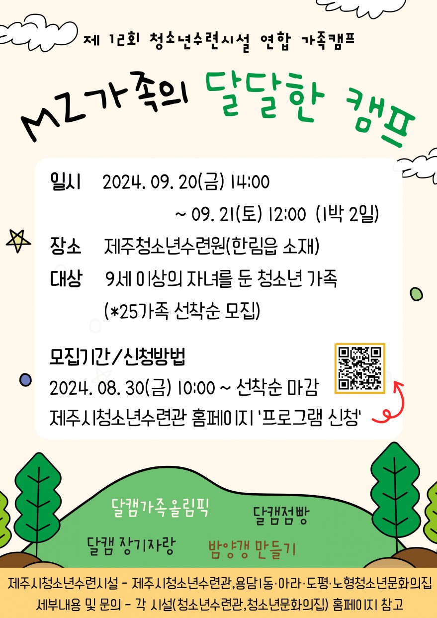 기타 | 제주시청소년수련시설 연합 가족캠프 참가자 모집