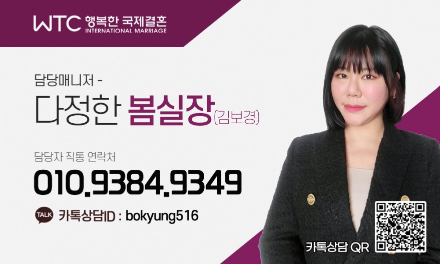 안녕하세요 WTC행복한국제결혼 봄실장입니다.