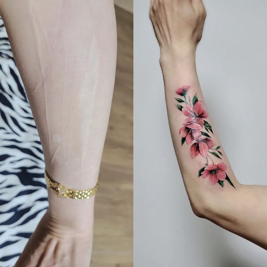 수채타투,올드스쿨,레터링,미니타투이레즈미,블랙&그레이,흉터커버