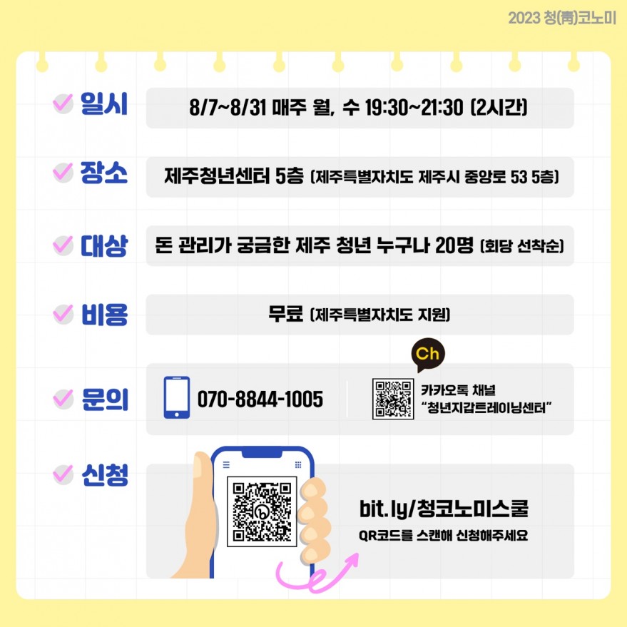 대상: 돈 관리가 궁금한 제주 청년 누구나 20명(회당 선착순)