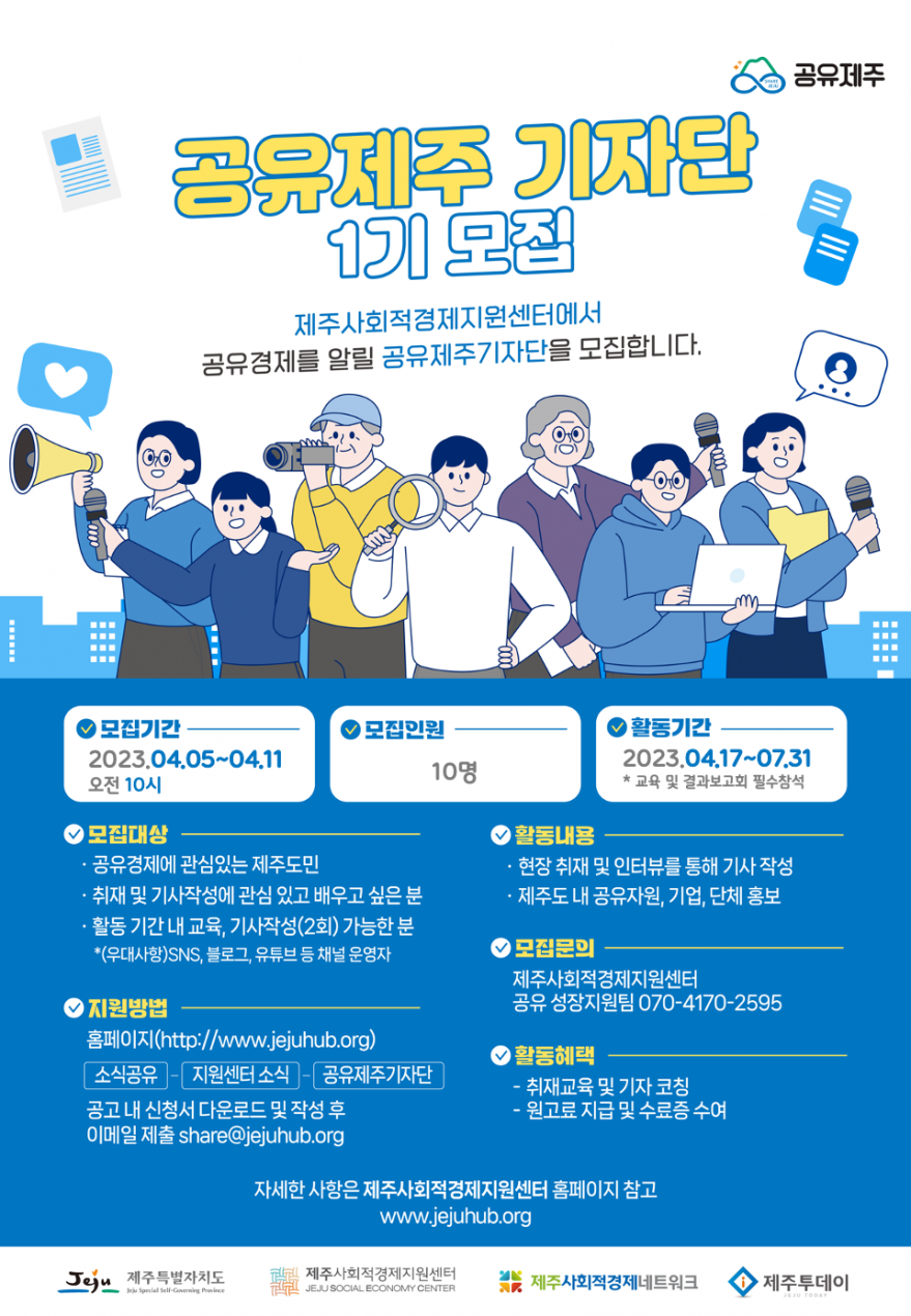 기타 | [추가모집] 공유제주기자단 1기 추가 모집 페이지 정보 작성자 제OOOOOOOOO터 작성일23-04-06 09:29 조회7,603회 연락처 010-0000-0000 관련링크 본문 제주사회적경제지원센터에서 공유제주기자단 1기를 추가로 모집합니다(교육일정 변경) 이전글 다음글 목록