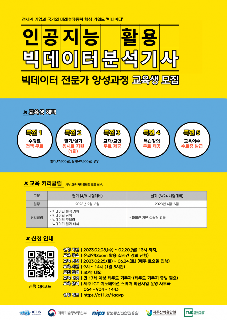 기타 | 인공지능 활용 빅데이터 분석기사 전문가 양성과정 수강생을 모집합니다!